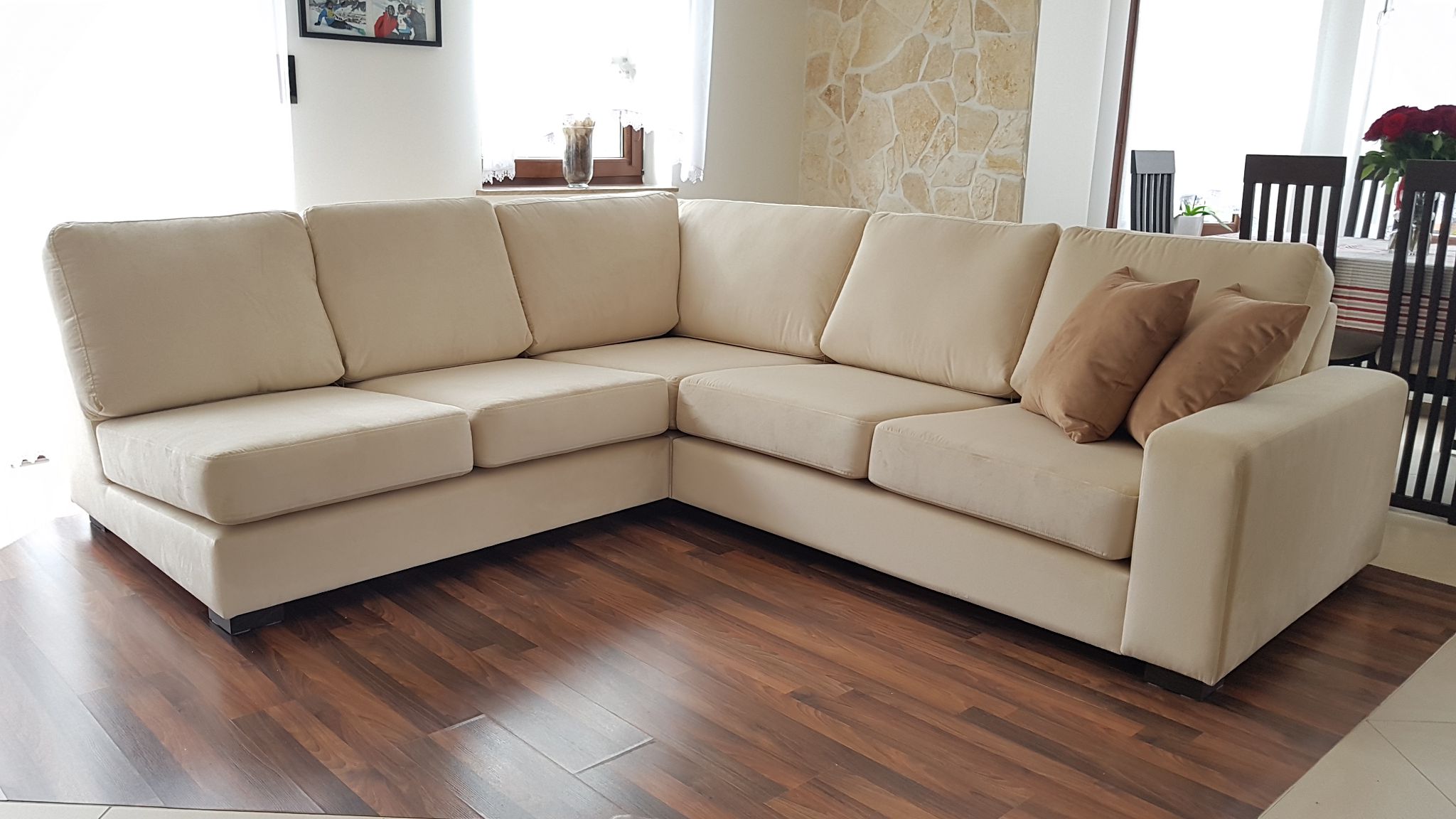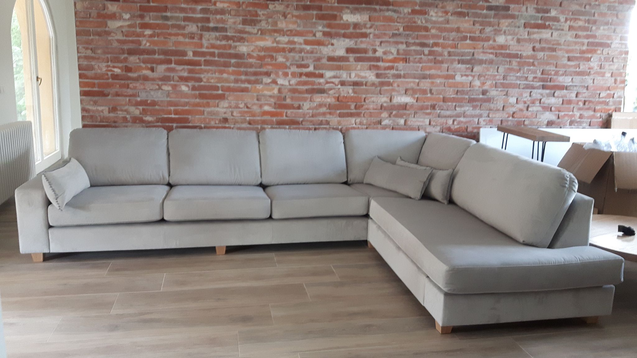 Goliat to stylowa sofa modułowa o ekskluzywnym designie z dużą ilością luźnych poduszek oparciowych, szerokimi podłokietnikami i głębokimi wygodnymi siedziskami.
